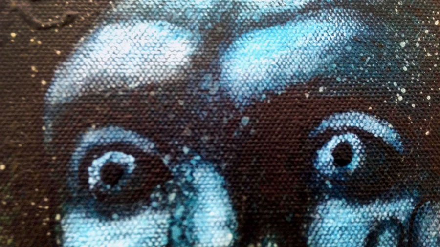 Te wpatrzone w nicość oczy pochodzą oczywiście z obrazu Zawieszenie (Suspense) Jana Lebensteina z 1971 r. Od połowy lat sześćdziesiątych XX w. głównymi bohaterami prac artysty stały się zwierzęco-ludzkie postacie wyciągnięte gdzieś z odmętów wszechświata, z głębin chaosu, ze szczelin pomiędzy wymiarami.