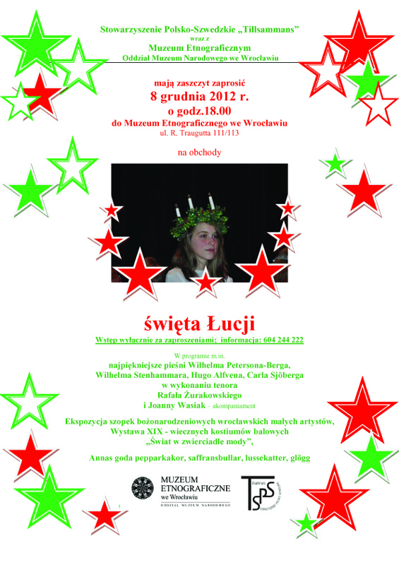 mają zaszczyt zaprosić na obchody święta Łucji. WSTĘP WYŁĄCZNIE Z ZAPROSZENIEM – godz. 18 00.