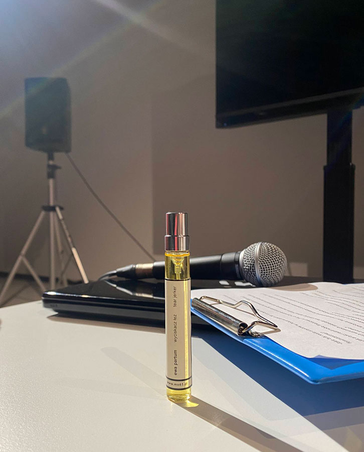 Ciekawostką spotkania była prezentacja autorskich perfum o wiele znaczącej nazwie „Wyciskacz łez”, które Ewa Partum stworzyła w 2021 roku. Kontrowersyjna fiolka łącząca elegancję perfum z ostrym zapachem gazu łzawiącego była odpowiedzią artystki na brutalność policji podczas Strajku Kobiet w 2020 roku.