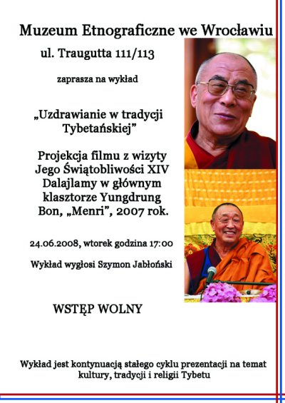 Wykład jest kontynuacją stałego cyklu prezentacji na temat kultury, tradycji i religii Tybetu
