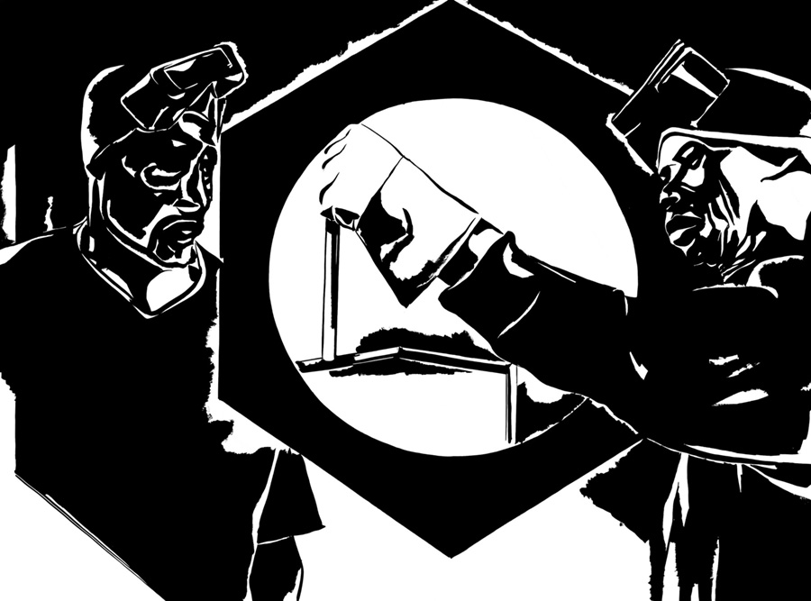 Koncepcja oparta na idei „momentu kodaka” – chwyta i zatrzymuje ulotny moment, zarejestrowany w sposób przypominający realistyczne rysunki utworzone przy użyciu szablonu, czasem umieszczane w przestrzeni publicznej.