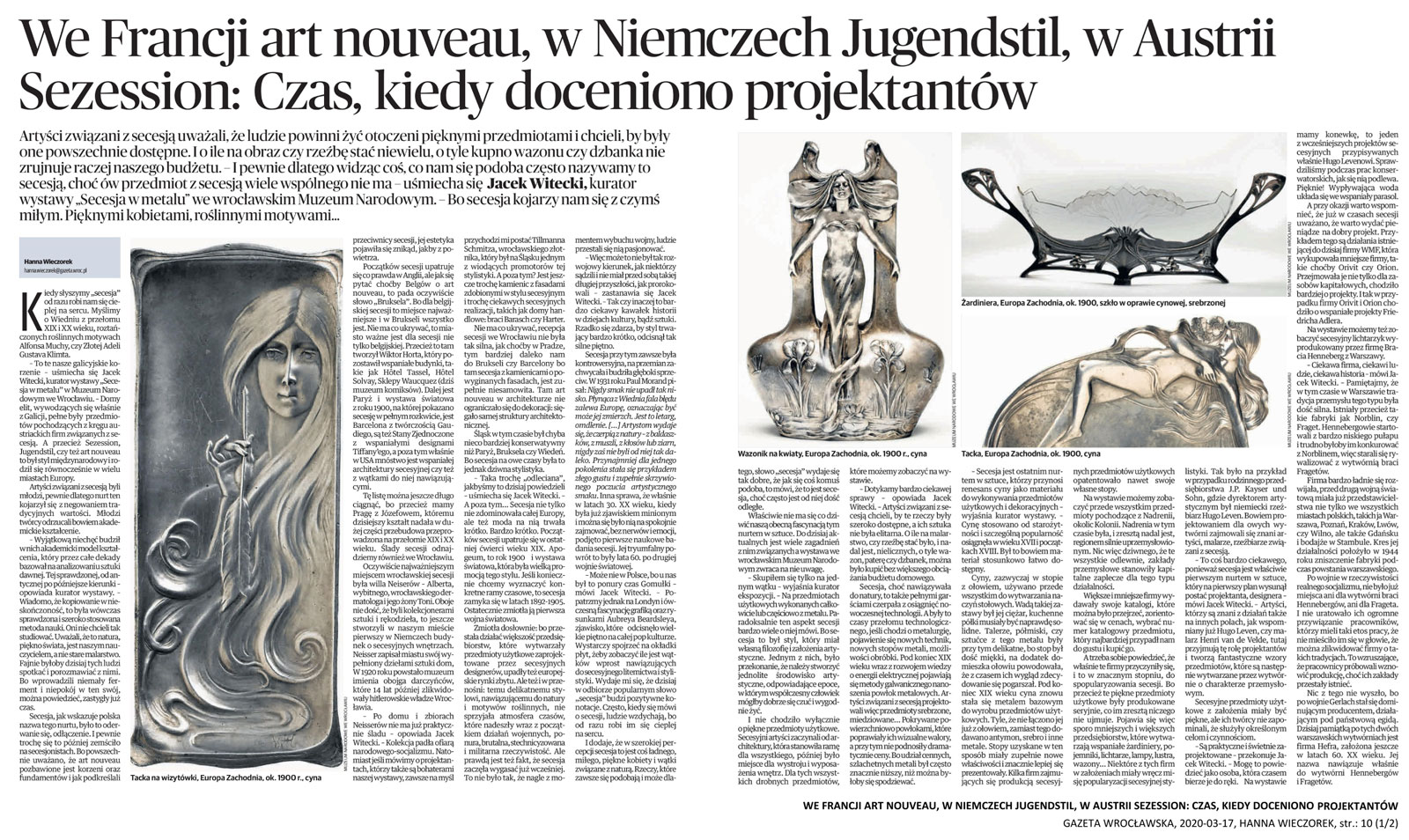A dodatkowo w wydaniu „Gazety Wrocławskiej” z 17 marca br. ukazał się tekst Hanny Wieczorek poświęcony wystawie.